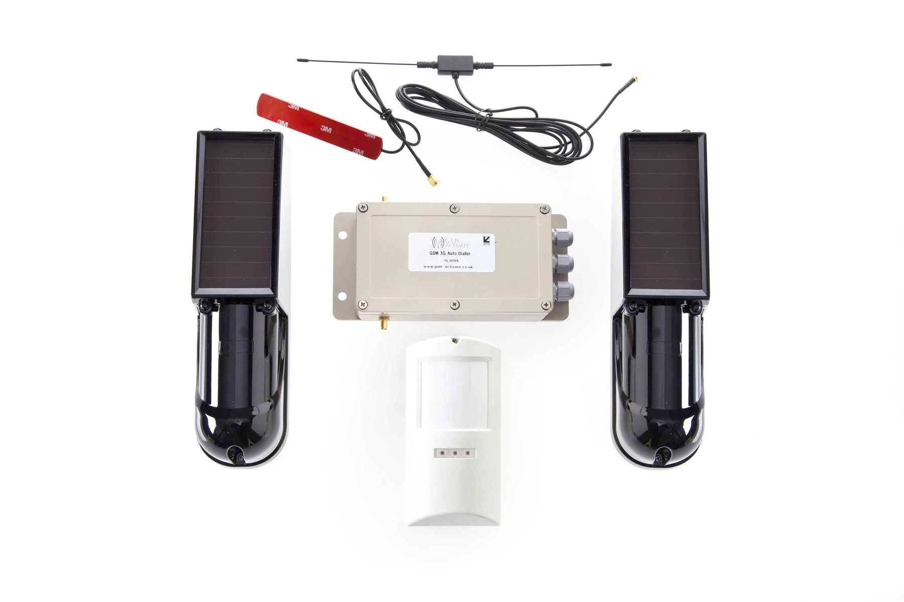Our Beam and PIR are battery powered and have a 100 metre range to the auto dialler unit