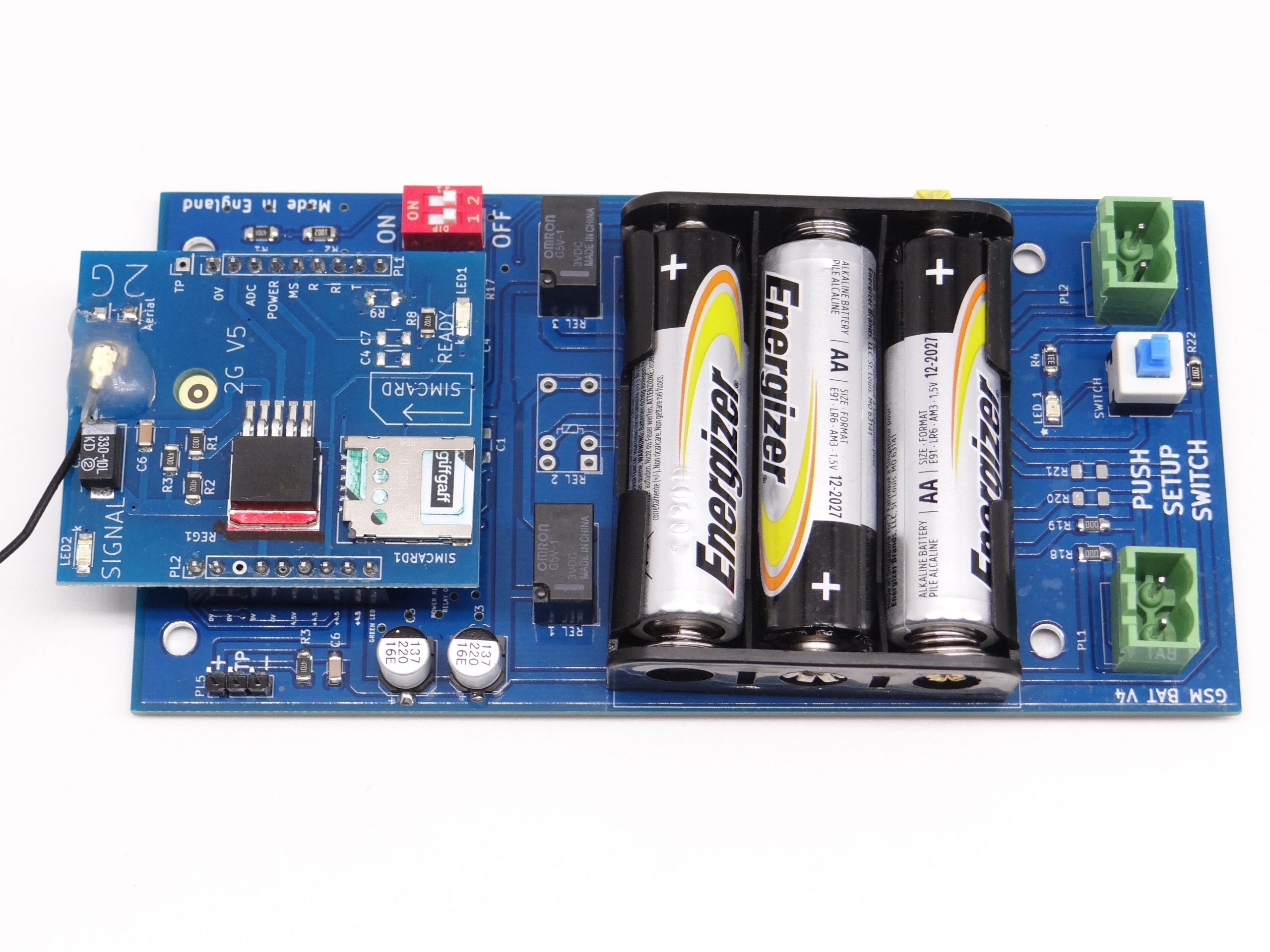 The GSM Battery Powered Auto Dialler is a monitoring unit. It can be used in locations without power to alert the end users of various events via text message and telephone calls. The unit runs from 3 x AA battery. This will last for around a year (or up to 30 messages) before the batteries have to be replaced.